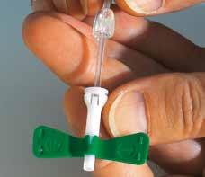 Jetzt gibt es diese Sicherheits-Flügelkanüle: Einstich wie gewohnt – Bei der Entnahme werden die beiden