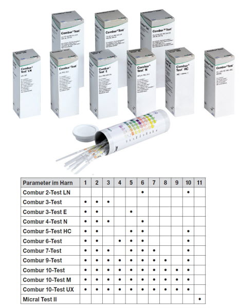 URINTESTSTREIFEN VON ROCHEDie bewährte Schnelldiagnostik zubesonders günstigen Preisen durchGroßimport.Zuordnung:1 = Glucose 2 = Protein3 = PH-Wert 4 = Urobilinogen5 = Blut 6 = Nitrit7 = Keton 8 = Bilirubin9 = Dichte 10 = Leukozyten11 = Albumin