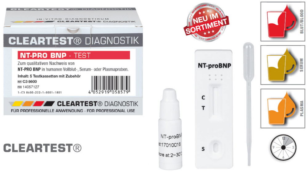 Der CLEARTEST® NT-Pro BNP dient dem Nachweis des kardialen Markers in der Diagnostik der Herzinsuffizienz und bei der Nachsorge.