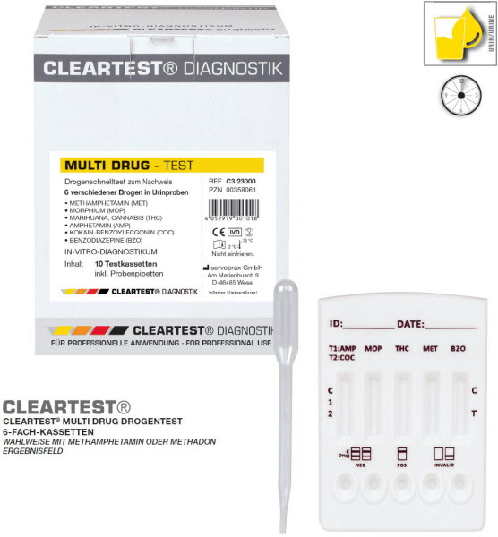 Der CLEARTEST® Multi Drug Test ist ein chromatographischen Immunoassay für den qualitativen Nachweis von 6 verschiedenen Drogen und Drogenmetaboliten in Urin.