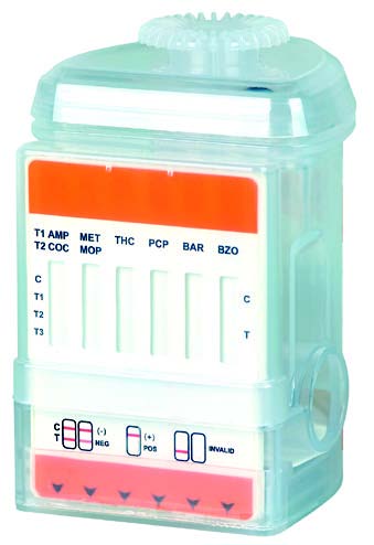 Die objektive Drogenüberwachung im Urinbecher. Anzeigend wahlweise 5- oder 8-er Drogenkombination oder individuell für bis zu 12 Drogen.