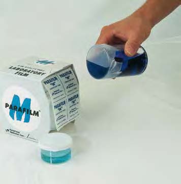 Die dehnbare Folie wird über die Öffnung der Flasche/des Gefäßes gespannt.