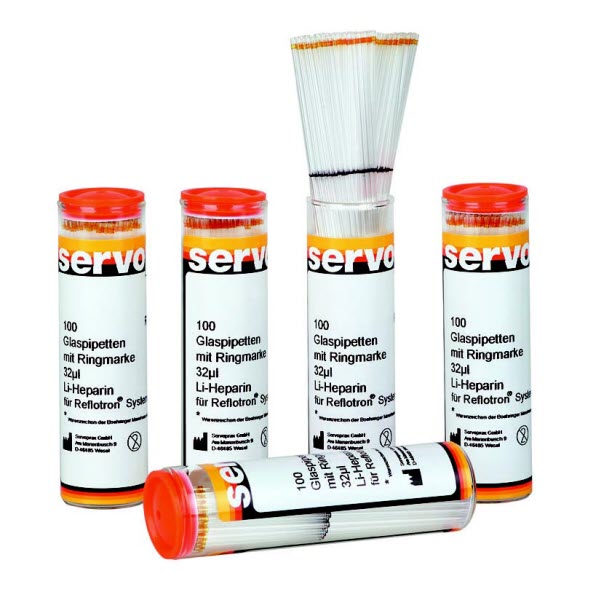 Abgestimmt auf das REFLOTRON®-System, Lithiumheparinisiert, 32 µl, farbcodiert, mit Ringmarke. Gem. IVD Richtlinien.