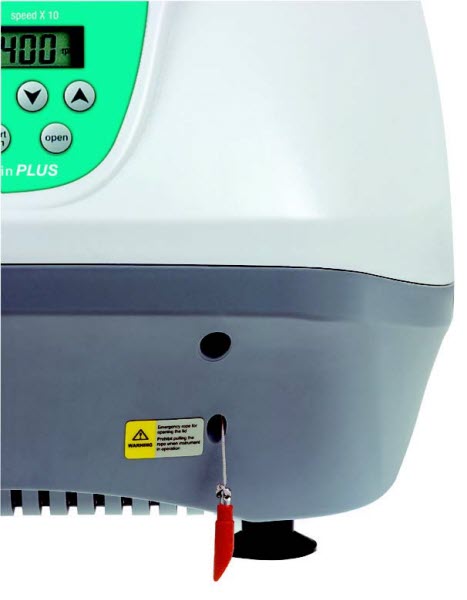 wird der Deckel elektromagnetisch verriegelt. Die Drehzahl ist in Schritten zu 100 U/min (max. 5000 U/min) und die Laufzeit in Minuten (bis max. 99 min) einstellbar. Während der Zentrifugation