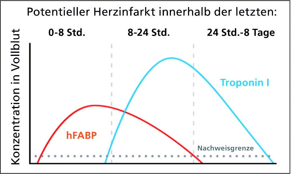 • hFABP, welches sich bei einem Infarkt sehr schnell im Blut